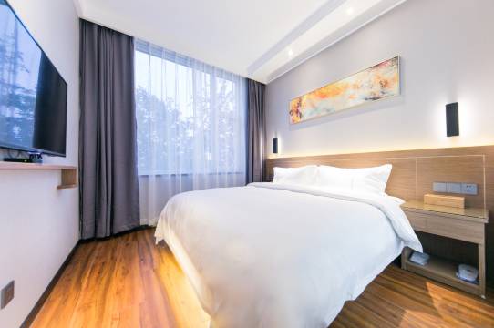 酒店位置很好,楼下一条街吃的很多,晚上也比较热闹附近比较安全,房间很安静,工作人员服务很好,就是下午对面反光有点晃眼睛拉一层窗帘挡不住,拉两层又乌漆嘛黑的。