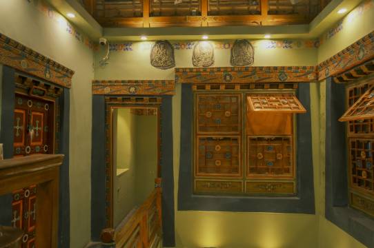 酒店,是以拉萨八廓文化为底蕴的主题精品酒店。酒店原址是北京雍和宫四学堪布罗桑巴桑在拉萨的住处,被称为“雍宫厦”。 八廓印在保留了拉萨古城藏式天井院落结构的基础上,于2012年初开始修复,以八廓文化为主题进行重新设计和布局,酒店以石刻、绘画、照片和艺术品讲述着八廓街的历史、文化、传说与故事。为了给客人带来更舒适的体验,2019年八廓印文化酒店整体装修升级改造,每一间房都有一个独特的纯藏式风格,并融入了现代设计,房间配有24小时热水、免费WIFI,楼顶观景台更是可以直接远眺大昭寺金顶和布达拉宫。
