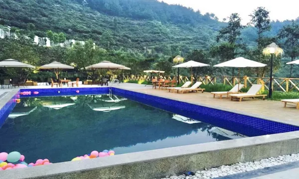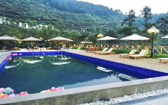 前台是一个小男孩接待的,非常可爱,有礼貌。小男孩还有一个妹妹,也很乖。整个住宿环境非常好,有多处游泳池,而且天气凉爽,整个绿化环境也很好。我们的房间也很大,早餐丰盛。有很多老人在这里避暑或者带孩子。