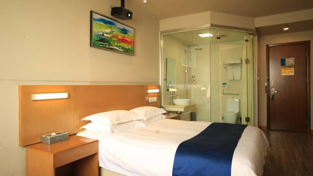 这是一家商务连锁酒店,提供免费预约接站服务,24小时暖气、热水、免费停车。每一间客房均配备有免费上网端口,WiFi信号覆盖,高清电视。酒店床上用品精挑细选,软硬适中的乳胶床垫,柔软透气的羽绒枕头,轻盈保温的羽绒被子,舒适柔软的羽绒床褥。酒店安心的睡眠系统、现代的卫浴系统、营养多样的早餐,便捷的商旅配套和典雅的酒店氛围,人性化的入住环境,保障您出门在外也有在家一般的感受。