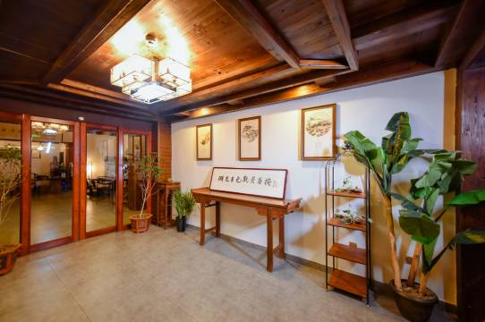 距离景区东门很近,工作人员接待和服务都很热情,提前告知停车和路线等信息,表演节目单,游览重点,安排妥当,服务周到。房间干净整洁,设施齐全,家具装修质朴,古色古香,榻榻米上品茶观景,非常惬意,家人都很满意!!!
