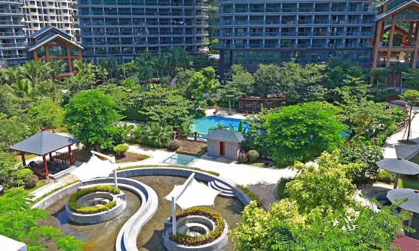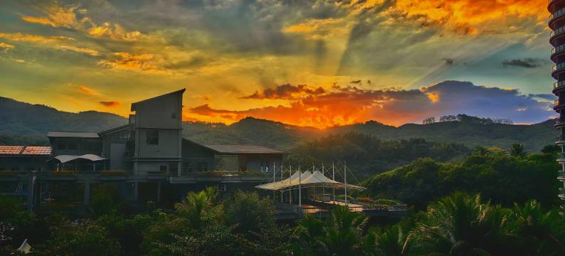 酒店位于五指山市澜湖路1号,仁帝山国家雨林康养基地内,基地总占地1.2万亩,建筑面积35万平方。