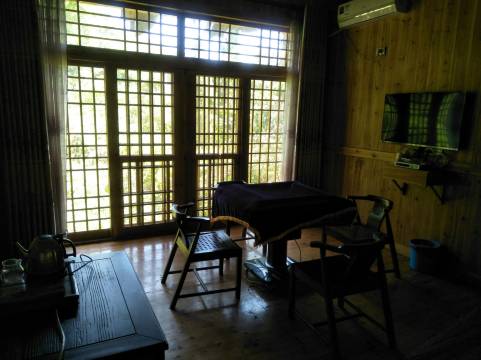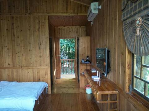 小木屋很独特,很喜欢,旁边就是潺潺流水,整个木屋区域都是在一片很高的竹林里,很阴凉,完全不需要空调。很安静,不会担心被影响睡眠。狗狗也很喜欢这里,尤其喜欢这里的水,咕噜咕噜喝了很多。饭菜非常好吃,简单但是可口,现在还在想念这里的饭菜。这里有一只橘猫,很友好,还会爬树,还有一只13岁的狗狗,被主人养得很好。老板夫妇人很好,他们是光荣之家,获得过很多荣誉,可以100%相信他们,以后有机会一定会再来。