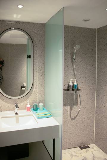 房间布局很好,也比较人性化。卫生间还是建议有顶喷会好些并且花洒打开正对着卫生间干区,这个需要改进一下,不然干区放的衣服都被打湿了