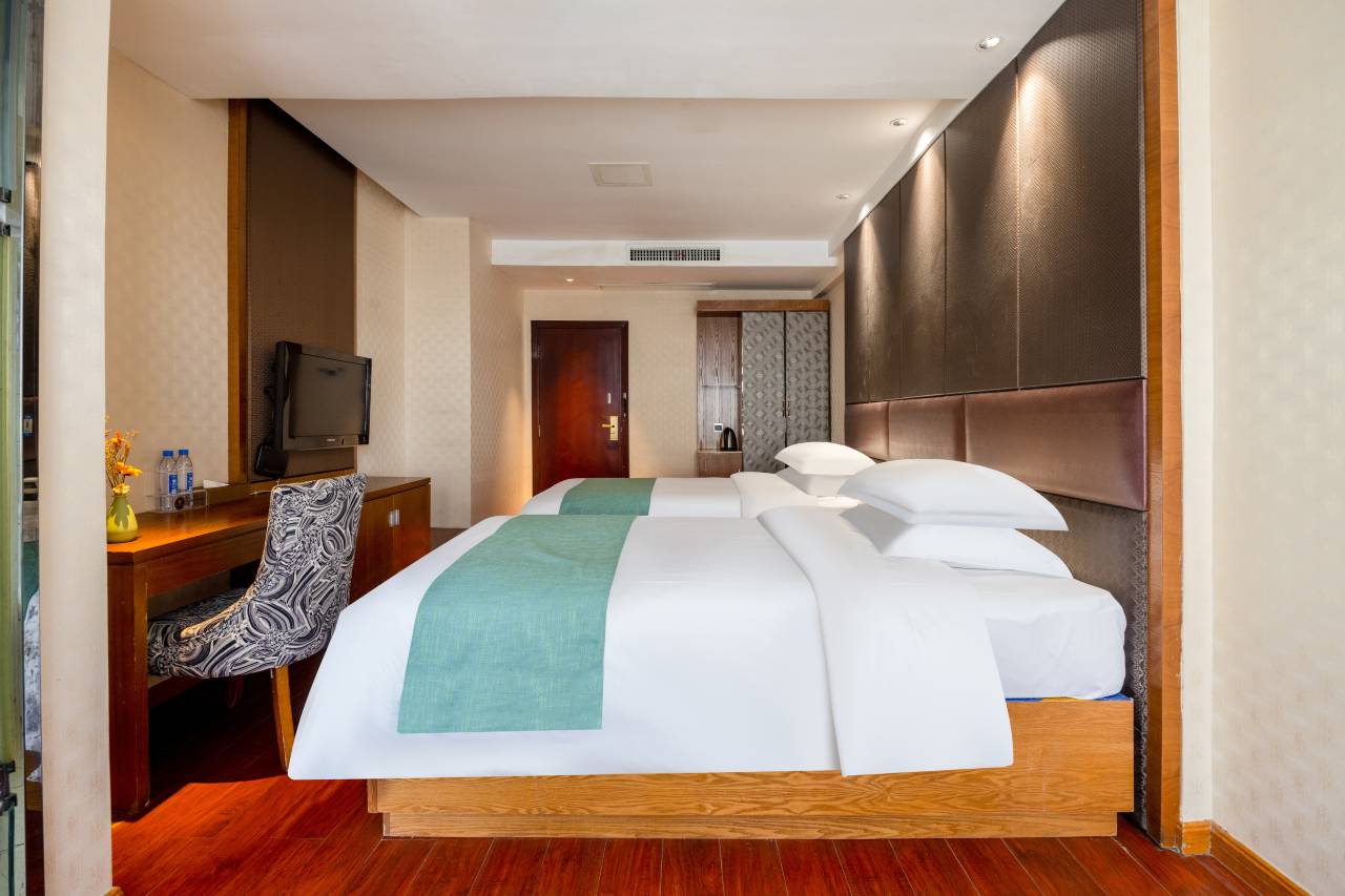 预订的豪华大床房,装修是偏2000年代的风格,有一定年代感,但房间整体整洁度达标,基础居住功能齐全,完全能满足1晚的短期入住需求。
