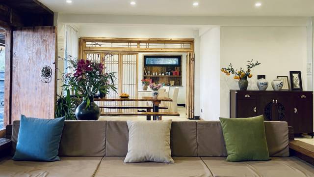 整个民宿都是木质基调的,古色古香。