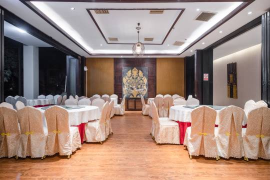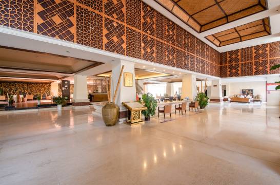 酒店装修风格呈现东南亚风情特色,酒店大堂宽敞气派,大堂前建有泳池和水体景观带,多种亚热带植物布满酒店四周,给宾客休憩营造出美丽舒适的环境。