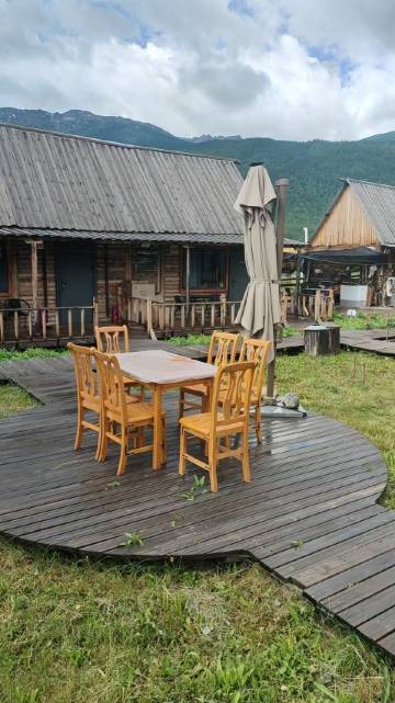 房间很干净卫生,卫生间有点小,但是马桶是智能的,热水也水量够,水温很热。老板送西瓜送杏子,房间外有一套小桌椅,可以坐着喝茶看山看云!
