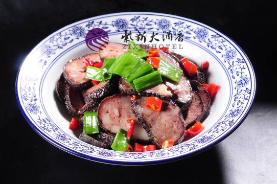 新化紫新大酒店总面积1000余平方米,客房舒适温馨,配设一流的床上用品、高标准配置、全楼层wifi覆盖、24小时热水等。餐饮部可同时容纳300人就餐,内设5个豪华包厢,厨房一律采用先进的尖端厨具,干净卫生、透明操作,食材一律选用土生土长的农家菜、绿色有机食品。