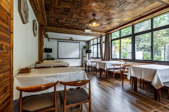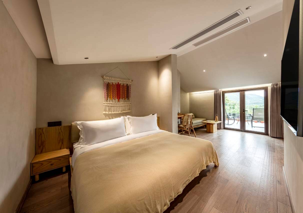 酒店在半山腰,视野不错。老板服务特别好,给我们发旅游攻略,听说我们去徒步还把帽子借给我了。环境很好,孩子玩的设施也很齐全。早餐也很丰盛,玉米很好吃。