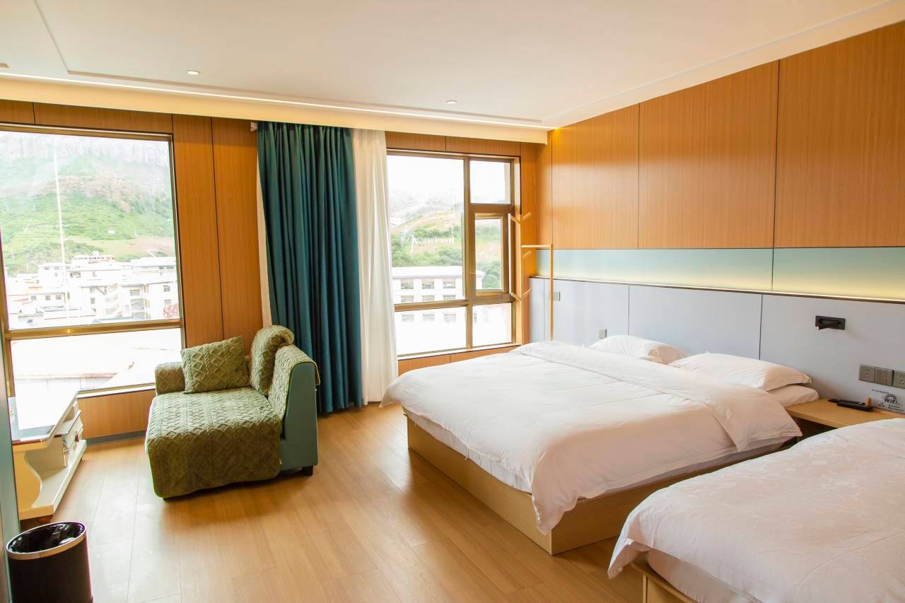 房型很全。屋内空调电褥子齐全 很暖和 服务也很不错。八台的小哥哥也很帅气 而且和蔼可亲 我们网上订了一间 让婴儿母亲住。我们三兄弟又另外又定了一间亲子间 房间真的很大 最重要的是离朗木寺景区很近 只需步行5之6分种就到。超级推荐