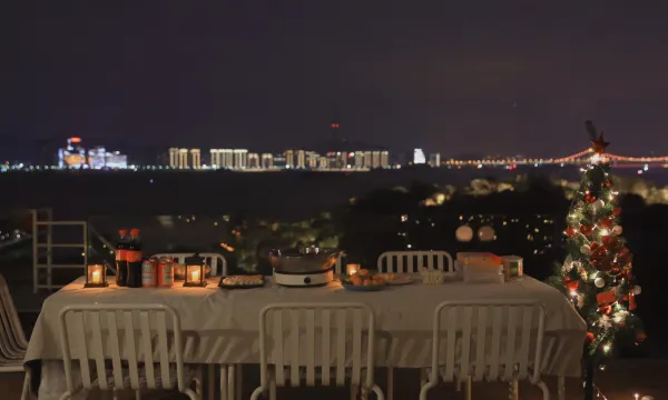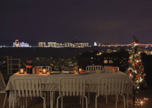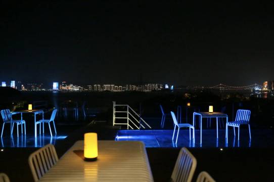 9点后回到民宿上楼顶没有看到亮蓝色的灯,少了一点氛围。不过,即使亮了我也会因为天气太热不会久坐。如果为了远景拍照,避免光污染还是不亮好。所以看个人选择露台是为了氛围闲坐还是拍照。