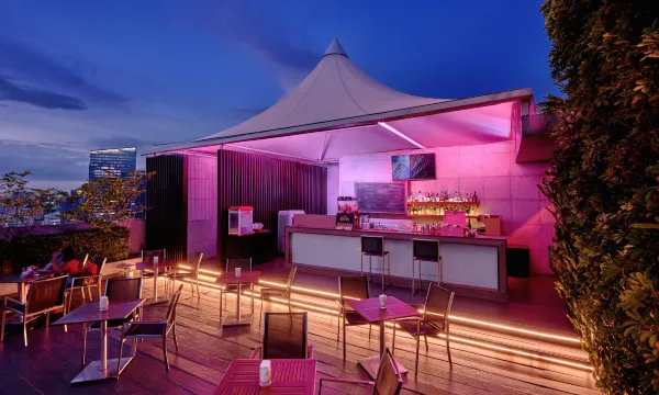入住期间,酒店将带给您的味蕾无限惊喜:宽敞的Element招牌餐厅享有时尚的装潢,颇具质感的桌椅整齐地排列其间,设有室内用餐区及开阔的户外用餐区,每日供应营养健康的丰盛自助早餐,伴您迎接清晨的一缕阳光,为您即将展开的曼谷奇妙旅程积蓄能量;亦出品美味的海南鸡饭、叻沙、肉骨茶及地道泰式风味料理。在氛围惬意的屋顶酒吧,您可观日落盛景、赏天际线风光、品味芳醇的鸡尾酒,或跟随动感的韵律节拍尽情舞动。