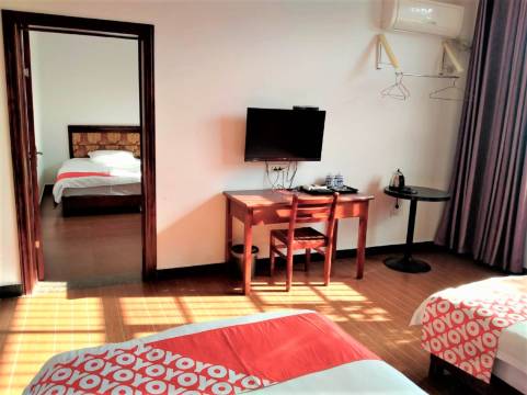 房间干净整洁,在景区来说这价格真的很实惠,旁边就可以购票直接进景区游玩,很方便