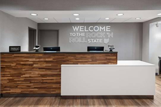 我们一家四口去华盛顿特区旅行。这家酒店是我们的中途停留点,也让我们得以参观摇滚名人堂!员工非常棒!帮我们办理入住手续的那位女士非常专业,让我们感觉很受欢迎。孩子们果然把牙刷忘了,但前台的那位先生帮我们解决了。入住和退房手续都超级简单快捷!
