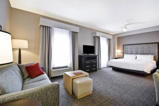 有 91 间客房提供备有大冰箱和炉灶的简易厨房;您定能在旅途中找到家的舒适。您的卧床备有高档床上用品,且所有客房均提供双人沙发床。提供免费有线和无线上网,方便您与朋友保持联系;另提供有线频道,可满足您的娱乐需求。便利设施包括电话,以及免费报纸(周一至周五)和独立的起居区。