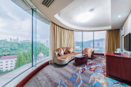 酒店设施齐全,电梯间标识有酒店各楼层场所的介绍一目了然,装修风格比较古典,背靠青山,晚上睡觉非常安静,前台小况服务热情,贴心的介绍了周边景点和美食,酒店周边交通也挺方便,值得推荐!