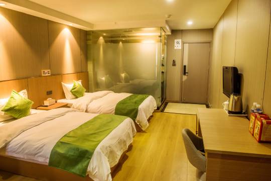 酒店位于汽车站附近,交通比较方便。酒店房间很大,设施设备比较好,卫生条件还不错,前台服务的小姐姐态度很好,推荐入住。