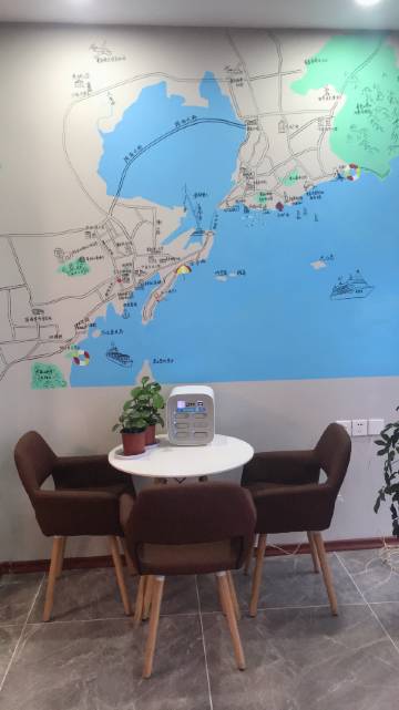 大厅墙上画的青岛地图也很好看,很全面