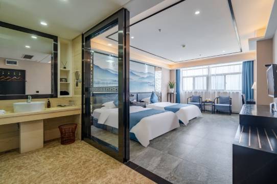 宽敞明亮,干净舒适整洁离高站很近,价格合理,早餐丰富多彩,服也到位,打开窗帘即现高铁站全景、睡觉安静。