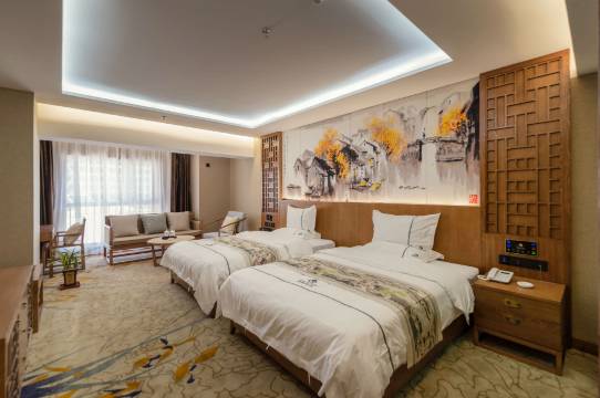 房间大,卫生看着还行,在万达楼上,周边很热闹,想吃的都有,想买特产也都有。6楼都是这家酒店。但这次定了两间有窗的亲子间,到了酒店说他们只有一间有窗的亲子间。携程不专业,也不提前通知。