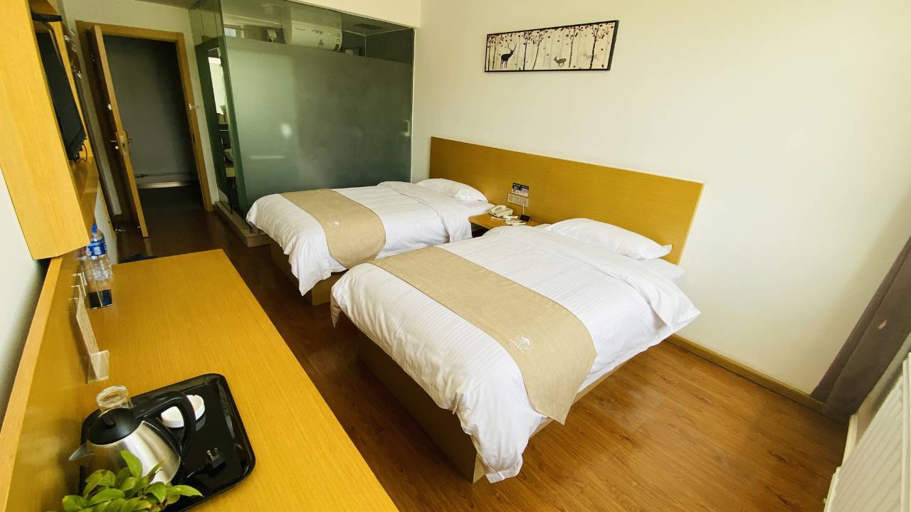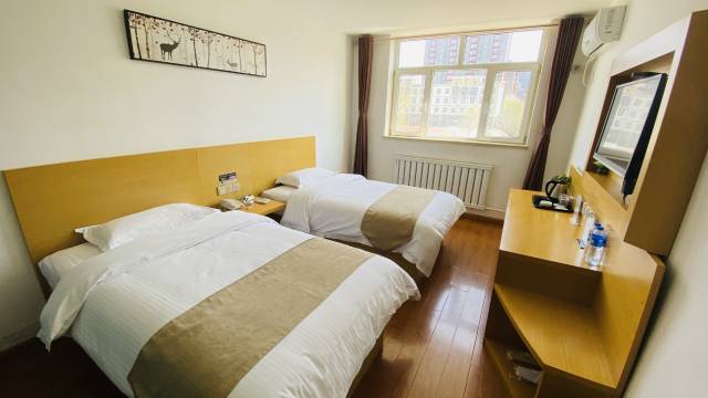酒店位置方便,导航就到了。酒店房间干净,一屋两张床,有窗户,有热水,服务态度可以,出差旅游可以推荐。
