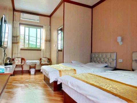 房间很干净,一楼房间非常大!还有一张麻将桌哈哈😃😃,热水,电视样样俱全。服务态度很好!环境超级安静而优美!还有免费停车场,是自驾游的最佳选择!