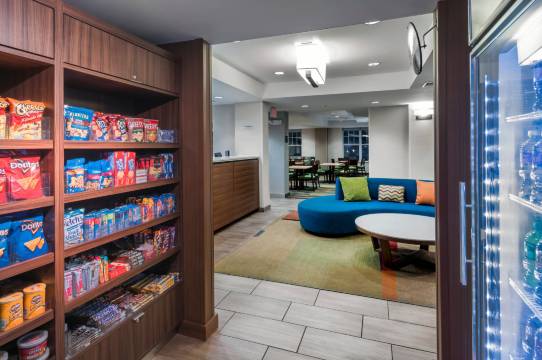 您可以到服务堪萨斯市中心/联合山万豪费尔菲尔德套房酒店住客的小吃吧/熟食店随便找点吃的。免费自助早餐供应时间为:周一至周五 06:30 至 09:00,周末 07:00 至 09:30。