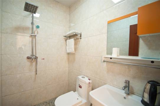 老板非常热情,让你感到旅途在外有家的感觉,卫生不错,智能装备挺棒。早餐和炒菜也挺好吃。强烈推荐,可以来住。