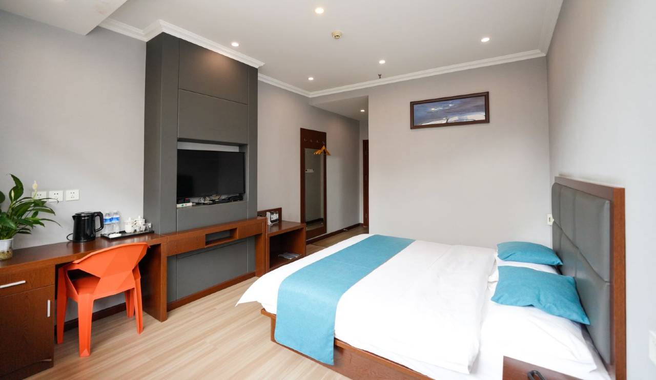 酒店装修时尚简约,客房布置温馨,精心挑选优良生活用具,柔软棉品被褥,为您打造品质睡眠环境,还有LED高清电视、品牌冷暖空调等先进设施,并提供7*24小时的在线客服服务,致力于创造一个便捷、温馨、舒适的住宿环境,真正让宾客舒服到家。