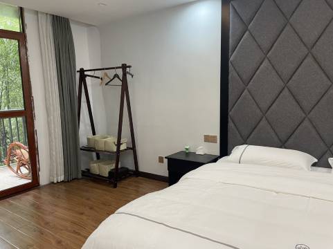 酒店位于四面山镇水口寺景区。酒店风格以当地丹霞色彩为主基调。追求融入自然又高端大气。丹霞拱衬、虹桥卧波,溪流潺潺、竹影婆娑,山水环绕、聚气藏风,是养性养身、休闲度假的好去处。酒店采用单体错落平台结构,层层有花园景观平台,间间房都有休闲阳台,前后通风采光,通透灵动,舒适惬意。房间宽敞大气(每间房20一60多平方不等,标间床一米五,豪华单间2米大床)装修时尚简约、奢华大气。无线WIFI、网络电视、背景音乐;书桌、衣帽行李架、电吹风、烧水器、驱蚊器配套齐全;24小时恒温热水、卫生间干湿分区、人性化双便(蹲、座)器,贴心服务每个细节。完善的配套设施:高清投影会议室、餐饮大厅,大小包房一应俱全,可同时容纳50余人开会、100余人就餐。开放式书吧可供你品茗聊天、弹琴对弈、挥毫泼墨;露天无边面界泳池,天空之镜,月亮秋迁,数座竹林休闲芧亭,可效竹林七贤,或茶饮或弈棋,或弹琴或击鼓(空灵禅鼓),怡然自乐。更有数亩方塘,清泉注入,山水养鱼,大片林地,散养土鸡鸭鹅,自种各种生态蔬菜生态富硒,让你尽享垂钓乐趣、山野口福。