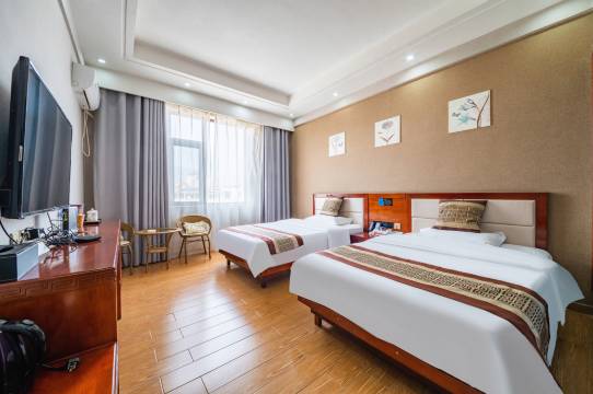 酒店拥有客房五十余间,配套24小时热水、无线wiif、长途免费电话、空气能源、净化水质等;酒店停车场可同时容纳60台车辆。