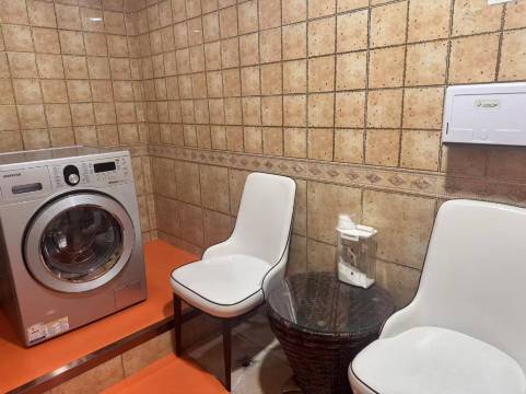 室内设施挺全的,看上去卫生也不错。唯一的问题可能就是洗手池设计的不太方便,太高了,而且容易把水溅到周围。但是洗手池,卫生间和浴室能分开这点这错,使用起来比较方便。