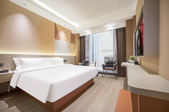 内江核心区宝藏酒店!楼下美食街 + 对面商业街,本酒店坐落于市中区城西街道中央路 ,楼下就是箭道街美食街,对面直望四方块商业街,全配齐设施,逛吃住行一键拿捏! 黄金区位 0 通勤逛吃 下楼即达箭道街美食街,李记锅盔、幺姑拌菜等内江老字号几步到,麻辣鲜香的地道滋味随时享。 正对面四方块商业街,复古文创、网红打卡点、品牌商铺全覆盖,白天逛非遗,晚上拍夜景,出门就是热闹。 多路公交近在咫尺,高铁站、城区景点轻松直达,出行不用绕路。 浅色系温馨风搭配柔和灯光,高支棉床品 + 柔软床垫,旅途疲惫一扫而空。 高速 WiFi、智能电视、独立卫浴、恒温淋浴全配齐,部分房型带休闲沙发区,办公休憩两不误。 防雾镜、多接口充电、遮光窗帘等细节拉满,住得更舒心。 核心亮点 高性价比之选 楼下美食 + 对面商圈,不用浪费通勤时间,充分解锁内江游玩时光。设施无损耗,游客打卡、商务出行都适配。 老城核心区配套成熟,超市、药店步行即达,生活便利度满分。 不管是寻味吃货还是打卡游客,这家酒店都是内江出行的优选!