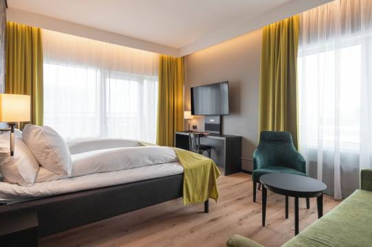在北欧酒店中、应该是性价比较高 、交通方便、离火车站非常近 酒店的早餐很推荐 品种丰富 一次满意的入住!对面就是最美建筑~图书馆