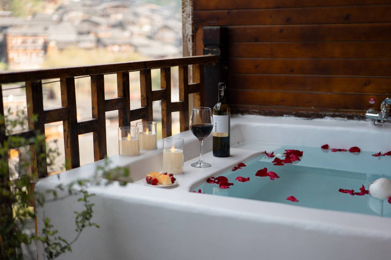 酒店在山上,体验很不一样~还遇到了送货的小马,位置很高,所以说是观景台一点不夸张!店长还给免费升了房型非常感谢~能全貌观看到苗寨夜景,漂亮的!花花草草和小摆件都很漂亮,城巴佬喜欢。房间设施也不错,露台喝茶喝酒都很方便,晚上可以听楼下的歌手唱歌,早餐虽然没来得及吃,但是下午茶不错,总体非常推荐。再次去苗寨也一定要住这家。