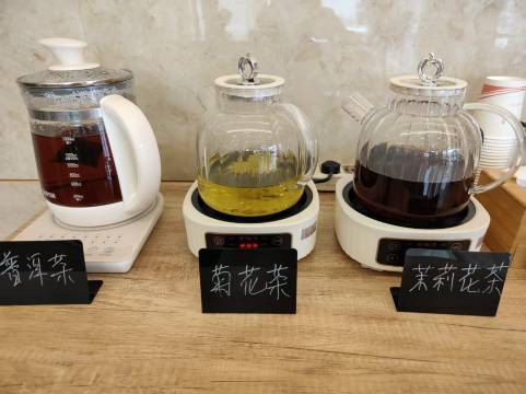 免费茶歇区:饮品、点心、水果、糖果自助拿取,欢迎光临!