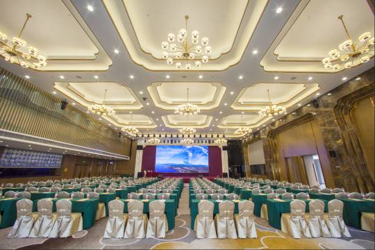 酒店拥有清新脱俗的中餐厅及9间风格各异的厅房,优雅精致的西餐厅、典雅舒适的大堂吧;酒店会议设施齐备,大小会议室及宴会场地共计约2000平方米,宴会大厅配备360英寸高清晰LED显示屏及高科技通讯设备,可同时容纳1000人举行会议,并配有同声传译、多媒体演示、会议跟踪服务系统等先进视听、音响设备;酒店现拥有约400个停车位,并配有健身中心、美容美发室、空中花园等休闲娱乐设施,满足不同宾客的各种需求。