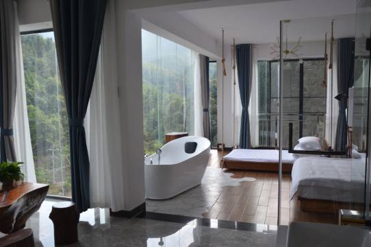 天然大氧吧中房间经大师设计,整面落地窗成功地将山景水景引入房中,是游客纵情山水的不二选择之心灵港湾。