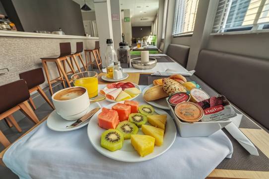 酒店设有咖啡馆,您可以在这里享用美味餐点。自助式早餐(收费)供应时间为:周一至周五 07:30 至 10:30,周末 08:00 至 11:00。