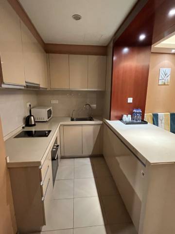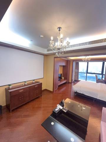 公寓客房装修奢华、全落地玻璃窗,开放式厨房、冰箱、洗衣机、24小时恒温冷热水供应、数字电视、中央空调、无线WIFI等,让你出门在外也有家一般的温馨、舒适。