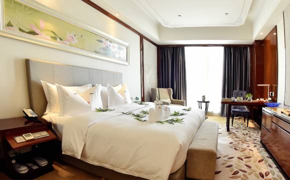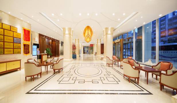 酒店在城西区市中心,辉煌气派,周围商业丰富,对面是人民公园,无论是吃住行都很方便,酒店房间干净整洁,大气明亮,大床宽大舒适,早餐丰富,满足各种口味。酒店服务一流。性价比极高,极力推荐入住。