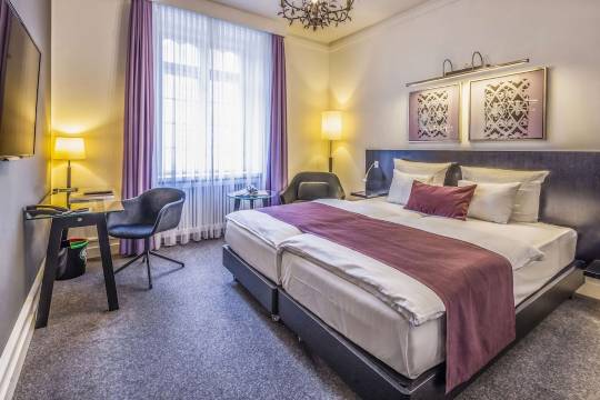 酒店历史悠久,位置极佳,正对面即是市政厅,边上即是步行街起始点,太方便了!唯一不足的就是无停车场,必须停车在附近的公共停车场。