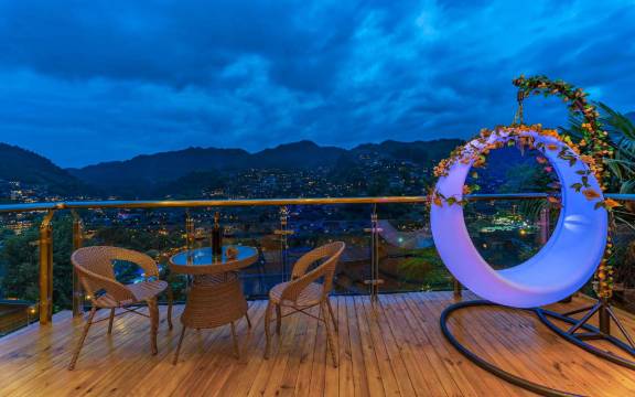 房间很宽敞,环境很好,主要是带有自己的观景台不用去挤人多的观景台了,在观景台上看夜景非常的美,也很惬!