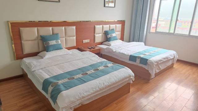 房间很舒适,然后那个床也非常软,呃,出行的话住这里非常没有问题,然后非常好找,就在中心街靠近的旁边,然后有点呃靠近国道,然后的话直接走的话也方便停车,方便,然后买东西购物都非常方便。