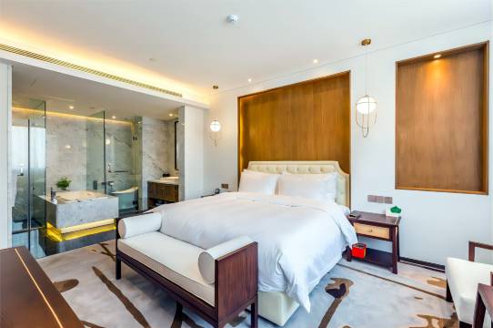 酒店很高档,设施虽然有点旧但非常完备,有很干净的游泳池,游泳池里还有机器人在清落叶啥的,还挺有意思的。酒店大堂的金鱼会跟着人跑,看到人过来就张大嘴等投喂,我们找前台要了点鱼食,喂了好一会儿,特别好玩。说到房间,我们订了两间房,其中一间升级成了豪华套房,带了个客厅,又大又干净,豪华大床房也很不错,设施用品都齐全,下次来还订这家,非常推荐!