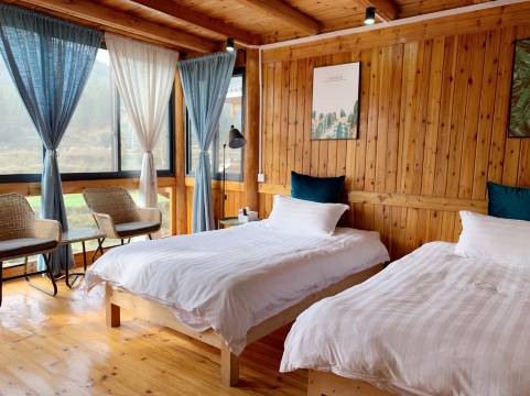 木质结构的别墅,房间里很干净,厕所有配备坐便清洁剂,对女生特别友好!老板和老板娘很热情,会介绍游玩路线,讲的很详细,最后还开车送我们出景区。菠萝和银子两只小喵很可爱,要是咪也热情点就好了