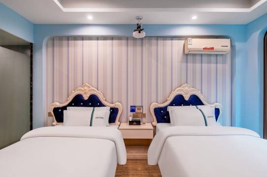 很不错的一家酒店,环境干净卫生,比周边其他的酒店要舒服一些,这个地方也蛮好找的,这个房间确实很大,前台接待的妹妹也年轻漂亮还特别热情的,空调效果特别好,晚上还有一点凉嗖嗖的,晚上来的还不知道下楼就是商业街,吃的玩的也蛮多的,住店也很安静的。下次有机会还选择它。