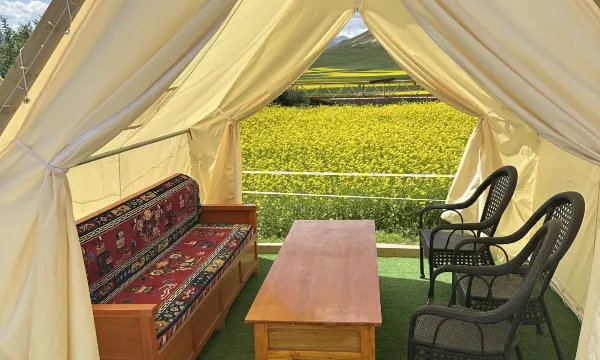 非常棒👍🏻酒店景观无敌,被油菜花和青山包围着,让人流连忘返,院子里还有喝茶聊天的帐篷,很惬意。走路几分钟就到卓尔山景区大门,房间干净卫生,毛巾浴巾都是一次性的,质量很不错
