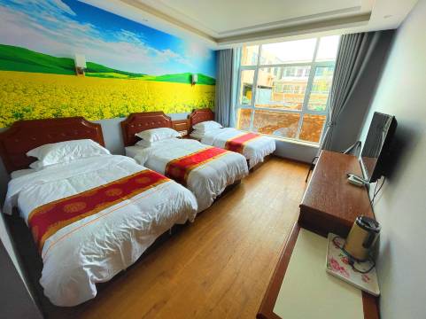 非常好的一次体验,带孩子来玩,进村子的左手边第一家,视野非常开阔,直接可以看到油菜花和雪山,房间的设施比较好,马桶和洗手盆都是TOTO的,热水很迅速,水量充足,总体来说体验感不错,老板人也好